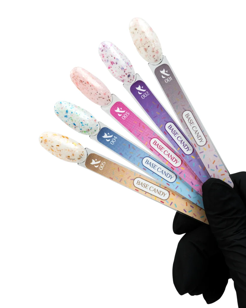 Candy Base on täydellinen tapa antaa kynsillesi hienovarainen kiilto ja ainutlaatuinen luonne. Runsaasti hohtavia hiukkasia eri väreissä ja muodoissa mahdollistavat ainutlaatuisten manikyyrien luomisen, jotka ilahduttavat kaikkia. Kalvo ei pudota, se leviää tasaisesti pohjassa, on ohut ja joustava, joten se ei häiritse työtä.