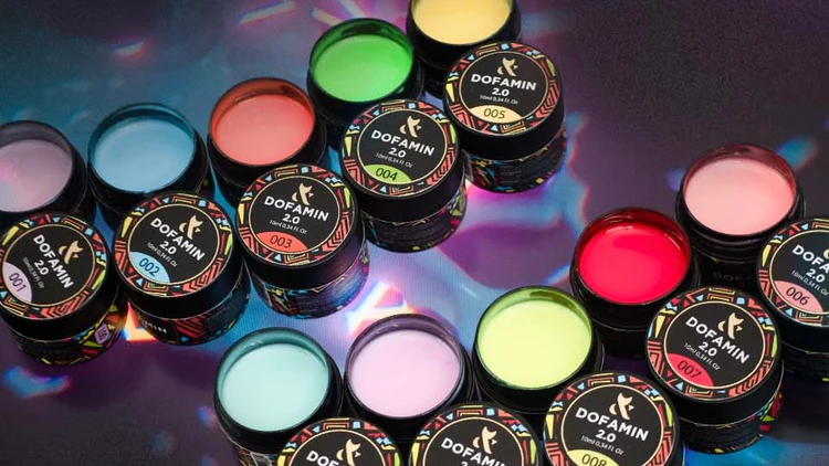 Dofamin 2.0 -kokoelma on päivitetty ja laajennettu kokoelma kylläisiä väripohjaisia värejä, jotka ovat tiiviitä ja jotka kahdessa ohuessa kerroksessa peittävät kynsilevyn 100 %.