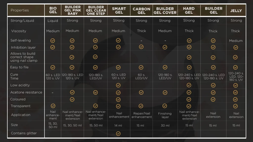 Builder- ja Hard-geelit ovat itsetasoittuvia