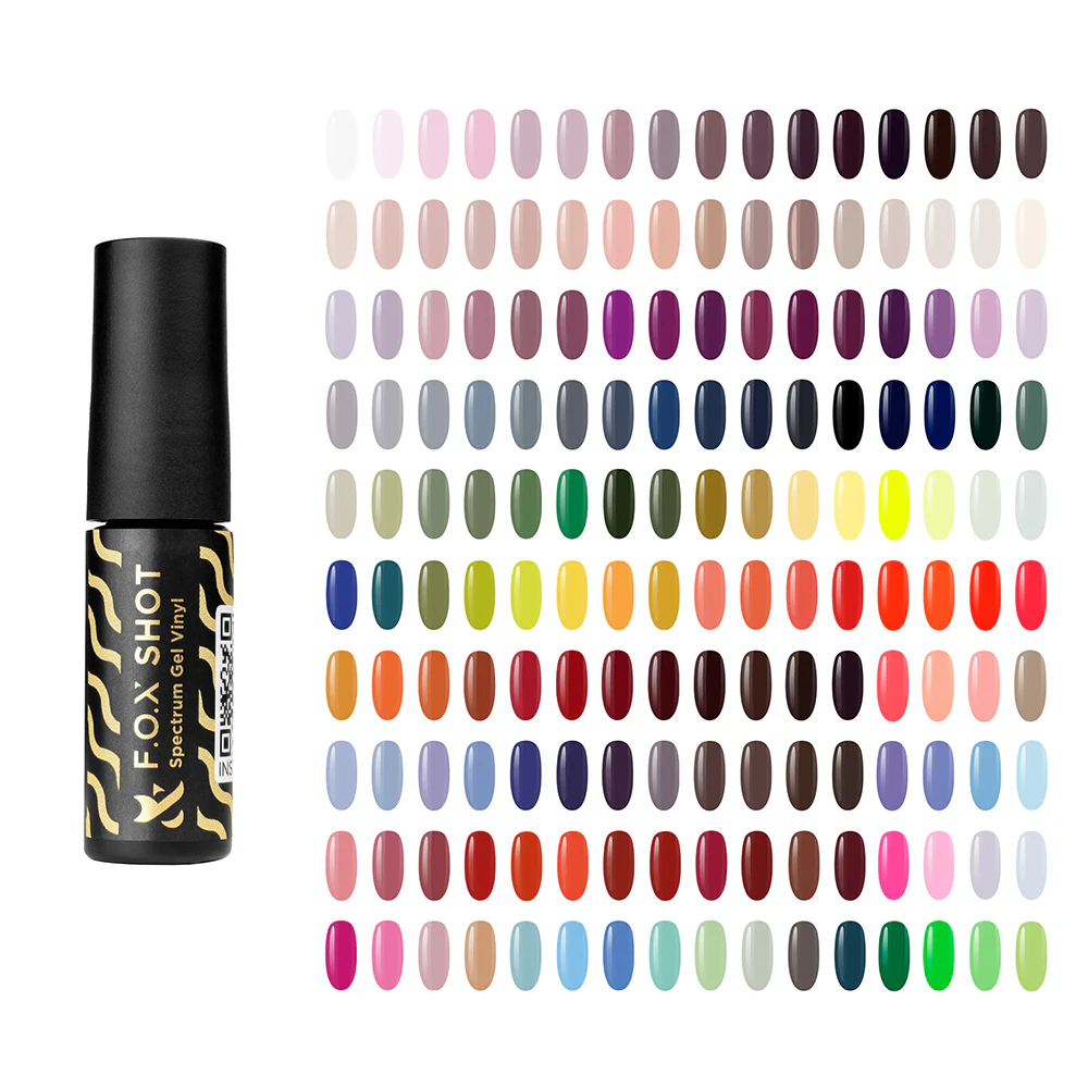 F.O.X Spectrum Gel Vinyl — kokoelma on maailman ensimmäinen pintajännitysgeelilakka. F.O.X:n pääteknologin kehittämän innovatiivisen koostumuksen ansiosta tämä työkalu tarjoaa erittäin pigmenttisen, tasaisen ja tiheän peiton. Korkea pigmentti mahdollistaa materiaalin levittämisen yhdessä kerroksessa.